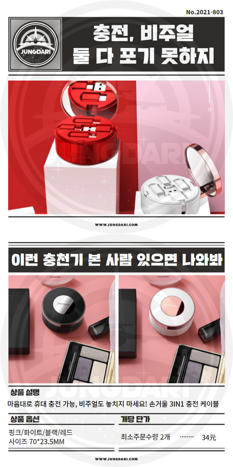 803. 손거울 3IN1 충전케이블